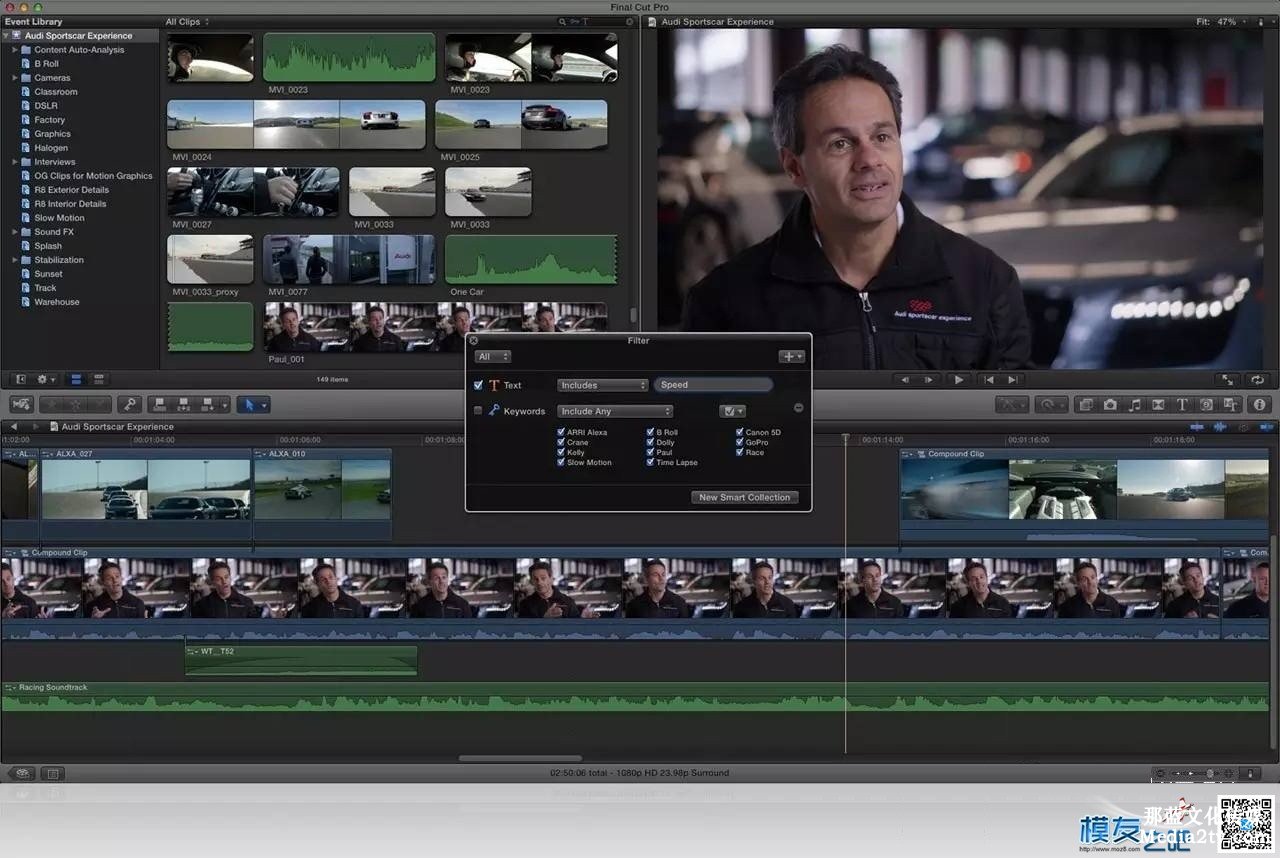 Final Cut Pro X的另一項首要改造是內(nèi)容主動剖析功用,載入視頻資料后,體系可在用戶進(jìn)行修改的過程中,主動在后臺對資料進(jìn)行剖析,依據(jù)媒體特色標(biāo)簽、攝像機數(shù)據(jù)、鏡頭類型,乃至畫面中包含的使命數(shù)量進(jìn)行歸類收拾。