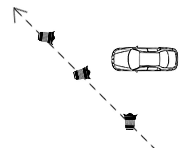 側飛鏡頭是無人機位于被攝主體的側面運動所拍攝的畫面,無人機運動方向與被攝主體的位置關系通常有平行和傾斜角兩種,如下圖所示。