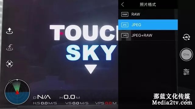 DJI GO 在選擇 jpeg 模式下,有5s和10s可選,但在 jpg+raw 模式下,只支持10s 的定時(shí)拍攝。