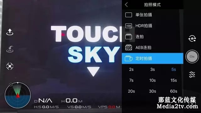 右側(cè)會(huì)彈出飛行速度條,我們選擇以最慢的速度1m/s來進(jìn)行拍攝,點(diǎn)擊想要拍攝的物體上方,再選擇定時(shí)拍攝5s一張。