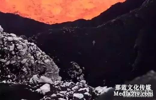 山崖下面就是火山,從畫面中也可以感受到火山的威力。